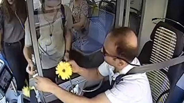 Antalya'da Büyükşehir Belediyesi'ne bağlı otobüs şoförü yolcuları ilginç bir şekilde karşıladı. Otobüse binen yolcular, şoförün uzattığı çiçeklerle tatlı bir sürpriz yaşadı.