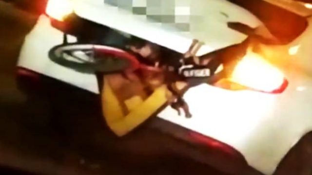 Otomobille çarpışan motosikletli, metrelerce savruldu