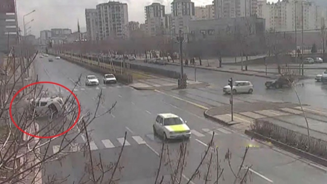 Kayseri'de sürücüsünün direksiyon hakimiyetini kaybettiği otomobilin takla attığı an, kameralar tarafından saniye saniye görüntülendi.