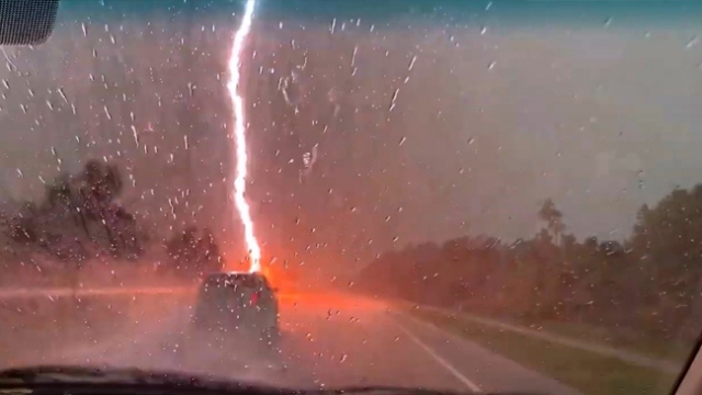 ABD'nin Florida eyaletinde geçtiğimiz Cuma günü şiddetli yağmur sırasında bir aracın üzerine yıldırım düştü.