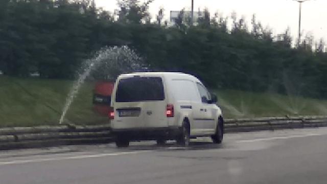 TEM Otoyolu Samandıra mevkiinde yol kenarındaki fıskiyenin altında aracını bedava yıkamaya çalışan sürücü kazaya davetiye çıkardı.