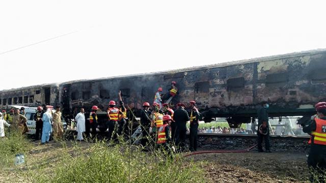 Pakistan'ın Liyakatpur kenti yakınlarında patlamanın ardından üç vagonu alev alan trende ilk belirlemelere göre 62 kişi hayatını kaybetti.