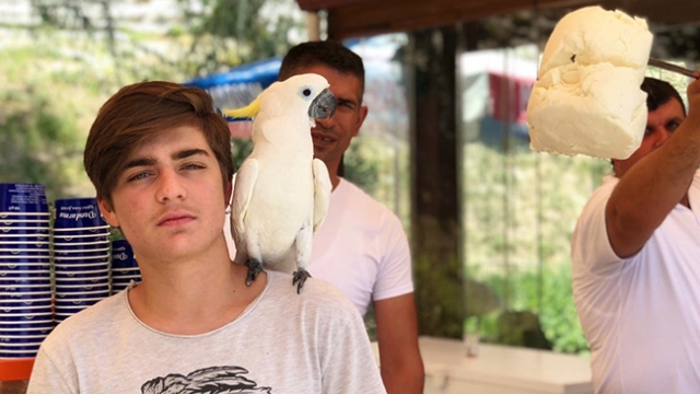 Denizli'nin Pamukkale ilçesinde "Şakir" isimli papağanın bir dondurmacının elindeki demir çubukla uzattığı külahtan dondurma yemeye çalıştığı anlar vatandaşlar tarafından ilgiyle takip edildi.