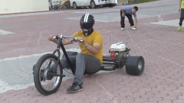 Samsun'da lise öğrencisi Barış Efe Demirel, "patpat" motoru ile bisiklet parçalarını kullanarak go-kart ile bisiklet tasarladı.