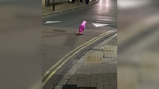 Ağustos ayının başından beri İngiltere sokaklarında dolaşan pembe martı görenleri şaşırtıyor.
