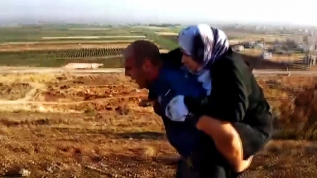 Polis, Suriyeli yaralı kadını 2 kilometre sırtında taşıdı