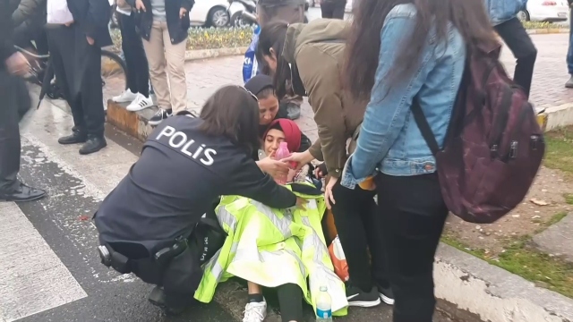 Adıyaman’da trafik polis memuru, hafif ticari aracın çarpması sonucu yaralanan ve olay yerinde ambulans bekleyen genç kızın üzerine giydiği montu örterek üşümemesini sağladı.
