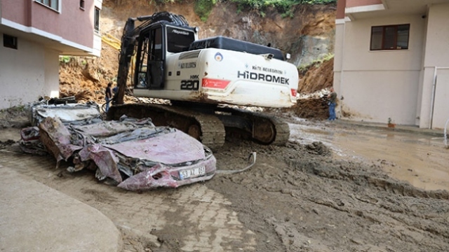 Rize'de sağanak yağış sırasında meydana gelen heyelanda çöken istinat duvarının altında kalan 4 araçtan 2’sine ulaşıldı.