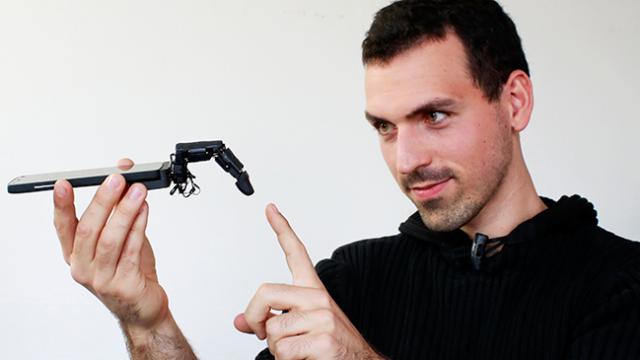 Fransa'da bulunan Telecom ParisTech Engineering School'da doktora öğrencisi olan Marc Teyssier, cep telefonuna takılabilen elektronik bir parmak icat etti.