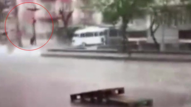 Rögar kapağına düşen yıldırım, yayayı metrelerce havaya uçurdu