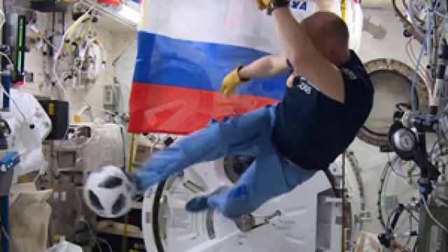 Rus kozmonot Anton Shkaplerov ve uçuş mühendisi Oleg Artemyev, Uluslararası Uzay İstasyonu'nda futbol oynayarak, Rusya'nın ev sahipliği yapacağı Dünya Kupası'nın tanıtımını yaptı.