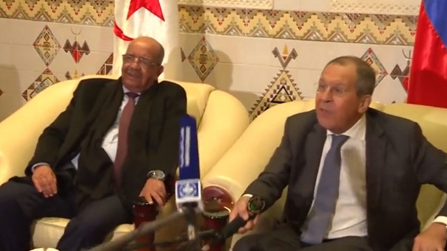 Rusya Dışişleri Bakanı Sergey Lavrov, Cezayirli mevkidaşı ile görüşmesinde, kendisine uzatılan bir mikrofonun çok yaklaştırılmasına şakayla karşılık vererek mikrofonla tokalaştı.