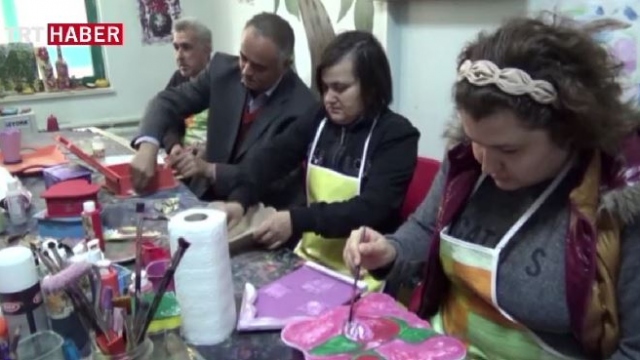 Ahşap boyama ve kilim dokuma kursu ile hem tedavi oluyor hem de para kazanıyorlar.