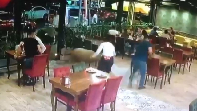 Bartın'da, sahibinin elinden kaçarak restorana giren kurbanlık koçun müşterilere yaşattığı panik güvenlik kameralarına yansıdı.