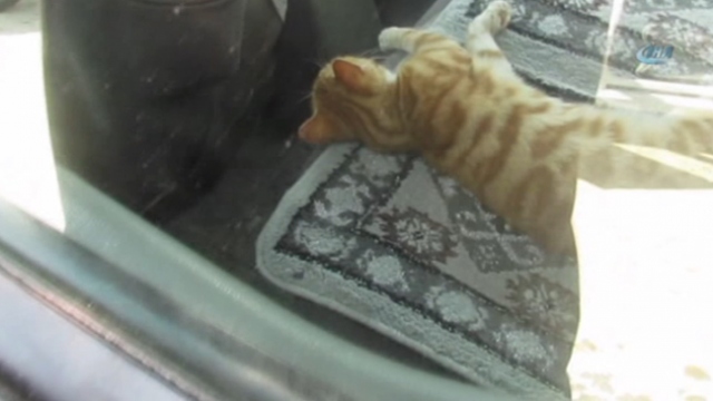 Kastamonu'da sahibinin peşinden süt kamyonuna binen kedi kimse yokken patileriyle aracı kilitledi. 2 saatlik çalışmaların ardından kedi kurtarıldı.