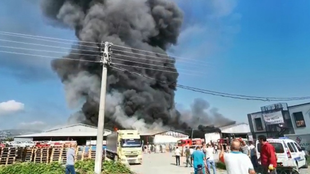 Sakarya'da bir marketin deposunda yangın çıktı. Çok sayıda itfaiye ekibi, yangının çevredeki ev ve iş yerlerine sıçramaması için çalışıyor.