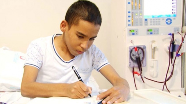 Sakarya'da yaşayan engelli ve böbrek hastası Murat Sarıoğlu'nun okuma yazma azminin önüne hiçbir şey geçemiyor.