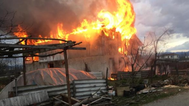 Düzce'de, bir ahırda çıkan yangında büyükbaş hayvanlar vatandaşlar tarafından dışarı çıkarılarak kurtarıldı.