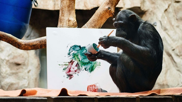 Sanatçı ruhlu Şempanze Lucy'nin resimleri açık artırmayla satışa sunulacak