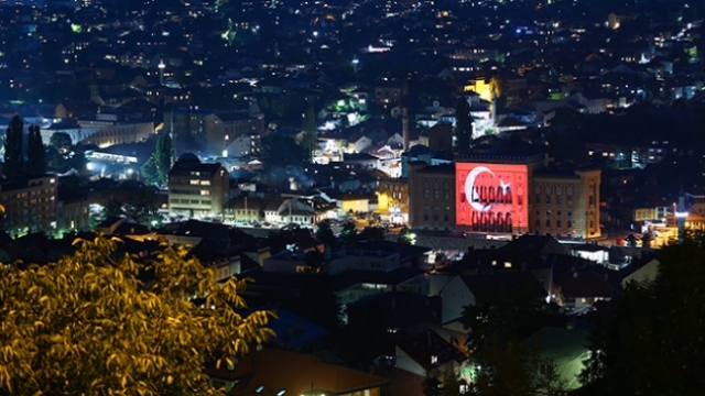 Bosna Hersek'in başkenti Saraybosna'nın sembollerinden ve "şehrin hafızası" olarak adlandırılan tarihi Vijecnica Kütüphanesi Türk bayrağıyla donatıldı.