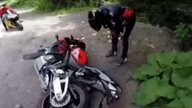 Sarıyer Garipçe Yolu’nda süratli bir şekilde ilerleyen motosikletli sürücüler bir birine çarptı, kaza anı kask kamerasına yansıdı.
