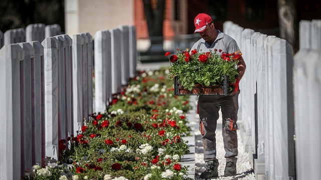 18 Mart Şehitleri Anma Günü ve Çanakkale Deniz Zaferi'nin 105'inci yılı hazırlıklarının sürdüğü Şehitler Abidesi bölgesindeki şehit mezarlarına görevlilerce binlerce şakayık dikildi.