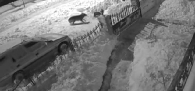Tokat'ın Almus ilçesinde aç kalan kurdun ilçe merkezine inerek bir köpeğe saldırması güvenlik kamerasınca kaydedildi.