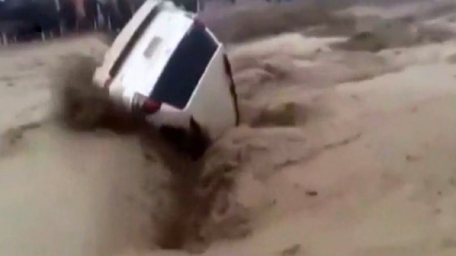 Araç sel sularına gömüldü. Pakistan’da bir araç sel sularının ortasında kaldı. Orada bulunanların korku dolu bakışları arasında suya gömülen araçtaki iki kişi su yüzeyine çıkmayı başardı, ancak kendilerine yardıma gelenlere ulaşamadı.