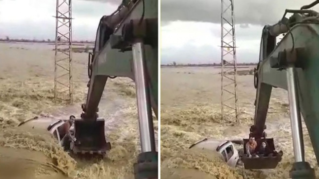 Osmaniye’nin Kadirli ilçesinde iki gündür etkili olan sağanak yağış sonrası oluşan sel sularının ortasında otomobil içinde mahsur kalan iki kişi kepçe yardımıyla kurtarıldı.