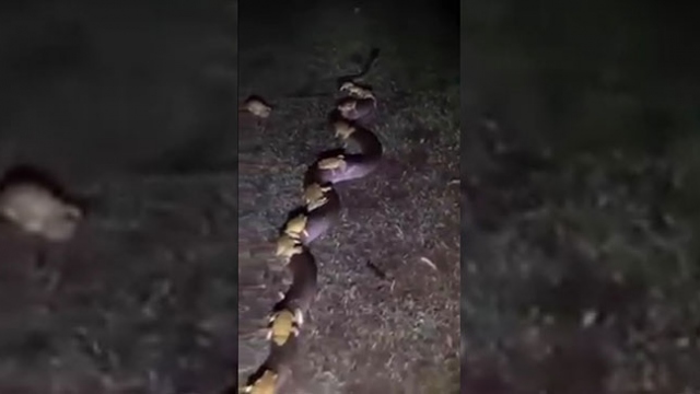 Yoğun yağışın etkili olduğu Avustralya’da selden korunmaya çalışan kurbağaların bir pitonun üzerine çıkması böyle görüntülendi.