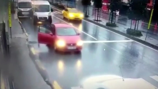 İstanbul Gaziosmanpaşa'da kontrolden çıkan minibüs önce park halindeki öğrenci servisine, ardından da otomobile çarptı. Kazadan saniyeler önce otomobilden inen bir kadın ise ölümden kıl payı kurtuldu.