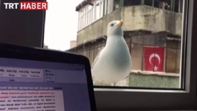 Fatih'te bir martı yaklaşık 1 aydır gagasıyla cama vurarak, yemek istiyor.