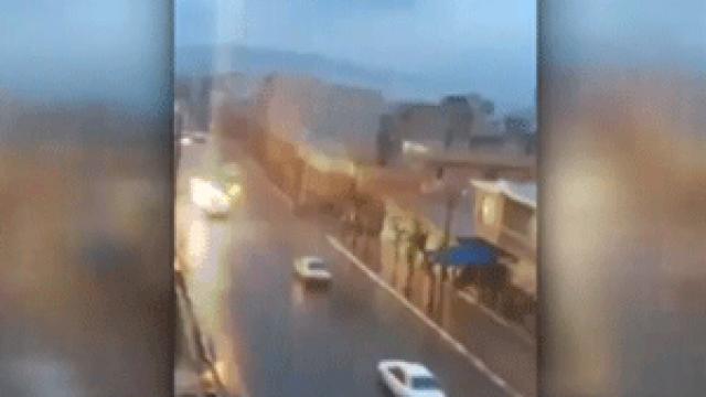 Nerede kayda alındığı bilinmeyen görüntüde, hareket halindeki bir araca yıldırım isabet ediyor.