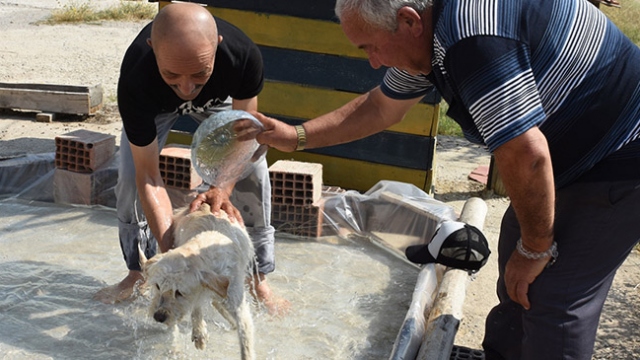 Kırıkkale'de, yaşayan hayvansever Mehmet Köksal, kendi imkanlarıyla yaptığı havuzda sokak köpeklerinin sıcak havalarda serinlemesine yardımcı oluyor.