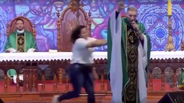 Brezilya'da düzenlenen bir Efkaristiya ayininde rahibin "şişman kadınlar cennete giremez" dediği için saldırıya uğradığı iddia edildi.