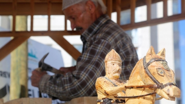 Kastamonu'da yaklaşık 37 yıldır ahşap ustalığı yapan 79 yaşındaki Hikmet Değirmencioğlu, mesleğini sokaktaki kameriyede sürdürüyor.
