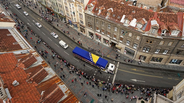 Srebrenitsa'da yaşanan soykırımın 23. yıldönümünde toprağa verilecek 35 kurbanın cenazelerini taşıyan konvoy, Saraybosna'dan gözyaşlarıyla Potoçari Anıt Mezarlığı'na yolcu edildi.