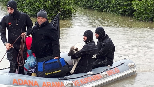 Adana'da, sağanak ve ardından oluşan taşkın nedeniyle çevresi su altında kalan evlerinde 4 gündür mahsur kalan çift ve köpeklerinin yardımına AFAD ekipleri yetişti.