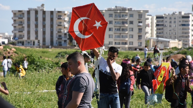 Mardin'in Nusaybin ilçesinde Suriye sınırına yakın bir arazide uçurtma şenliği düzenlendi.