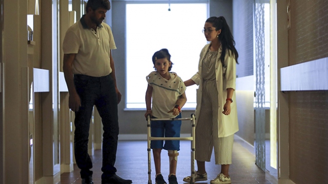 Suriye'de evlerinin bahçesinde oynarken atılan bombayla bedeni ağır hasar gören 8 yaşındaki Reyyan, 20 ay sonra ilk adımlarını Türkiye'de attı.