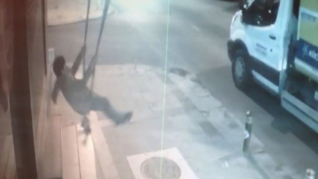 İstanbul Küçükçekmece'de bir mağazaya süs olarak asılan kurdeleleri kullanarak salıncak yapan çocuğun eğlencesi güvenlik kameralarına yansıdı.