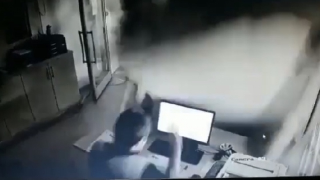 İzmir'de, bir otomobil tamir servisinde tadilat yapıldığı sırada iş yerinin tavanı aniden çöktü. Yaşananlar kameralara saniye saniye yansıdı.