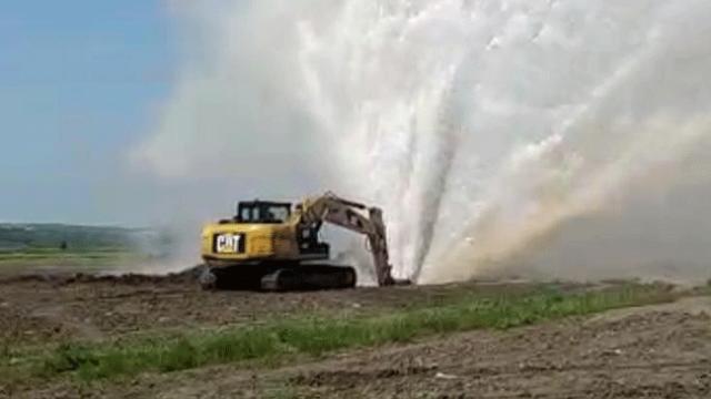 Tekirdağ'ın Muratlı ilçesinde, su tahliye hattında meydana gelen patlamanın ardından borudan çıkan sular metrelerce yükseğe fışkırdı.