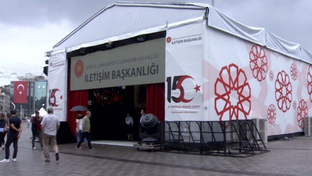 Cumhurbaşkanlığı İletişim Başkanlığı, "15 Temmuz Milletin Zaferi" dijital gösterim merkezini Taksim Meydanı'nda hizmete açtı. Merkezde o geceyi anlatan videolar gösterilecek.