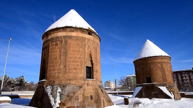 Bitlis'in Ahlat ilçesi birçok tarihi eseri ile bir açık hava müzesi. Tarihi ilçe kar yağışıyla da farklı bir güzelliğe büründü.