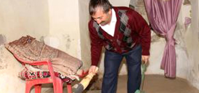 Yozgat'ın Sarıkaya ilçesine bağlı Terzili Mahallesi'ndeki caminin imamı Metin Halıcı, lojmanının avlusunda bulunan tarihi Ermeni kilisesinin bakımını ve temizliğini yapıyor.