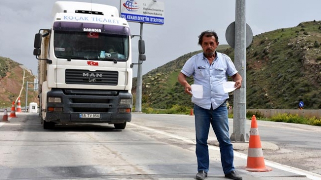Sivas'ta tır sürücüsü Gültekin Kaymak, Yol Kenarı Denetim İstasyonu'nda fazla tonaj nedeniyle ceza yedi. Kantarın fazla tarttığını iddia eden Kaymak 6 saat boyunca kantarı kullanıma kapatarak eylem yaptı.