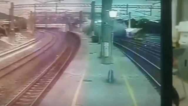 Tayvan'ın Yilan bölgesinde bir trenin raydan çıkmasıyla meydana gelen kazanın güvenlik kamerası görüntüleri ortaya çıktı.