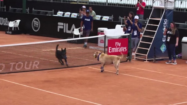 Brezilya'nın en ünlü tenisçileri, gösteri için oynanan oyunda sahipsiz köpeklere farkındalık yaratmak için top toplayıcı olarak köpeklerle teniz kortunu paylaştı.