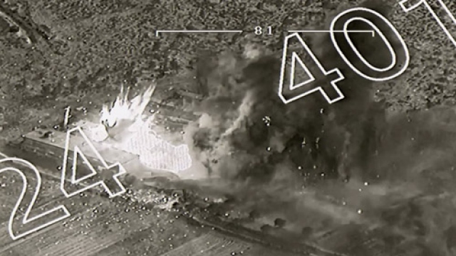 Zeytin Dalı Harekatı'nın ikinci gününde Türk savaş uçakları, Afrin'de terör örgütlerine ait silah ve mühimmat deposunu tam isabetle vurdu.